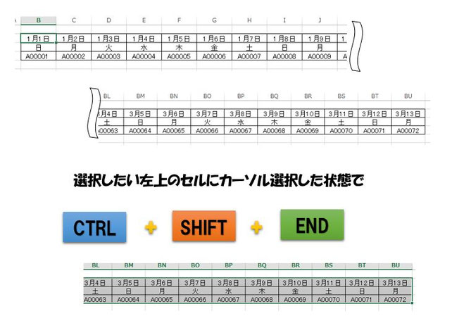 ぞんな時は選びたい、左上のセルを選択した状態で