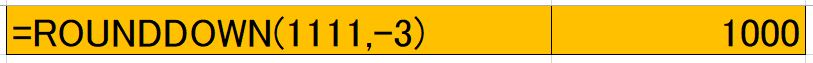 例)1000円以下切り捨ての場合 ROUNDDOWN(数値,-3)となります。