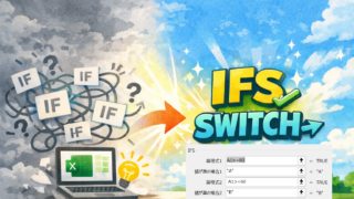 パソコン小技 IF(IF(IF(IF…)))はもう嫌だ! IFの入れ子は卒業しよう ― IFS と SWITCH を使ってみる ― Excelで「条件によって結果を変えたい」と思ったとき、多くの人が最初に使うのが IF関数 です。 =IF(A1>=80,"A",IF(A1>=60,"B","C")) ただ、この書き方は 条... 2026.02.04 パソコン小技ブログ