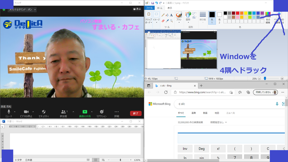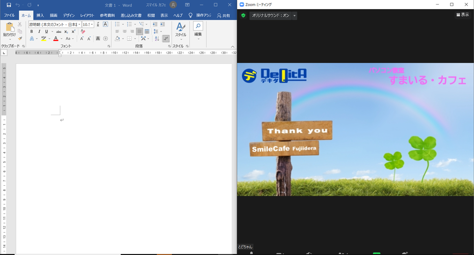 こんな風にZoomで会議しながら、Wordで資料を作るなんて時に