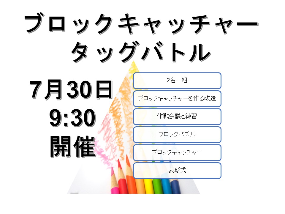 ブロックキャッチャーは見本を見ながら作ってもらいます。また自宅で作って当日持ち込みでも大丈夫です。