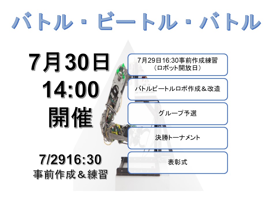 前日の29日のロボット教室開放日でもロボットの作成にとりかかり、参加者同士の練習試合も可能です。