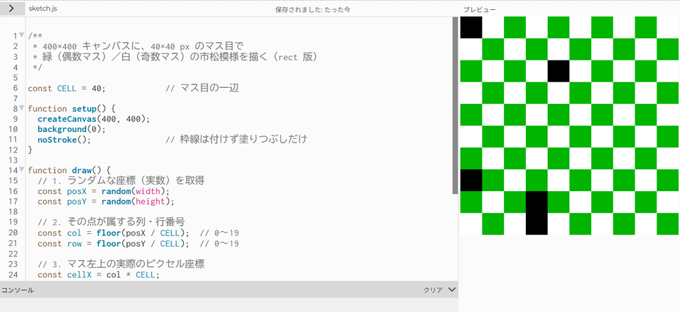 - 簡単なアニメーションの作成:画面上で動きのある作品を作り、動きのロジックを理解します。